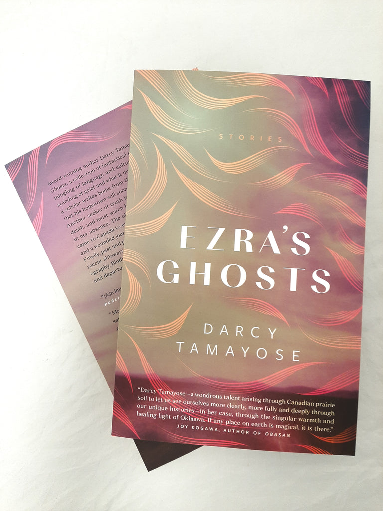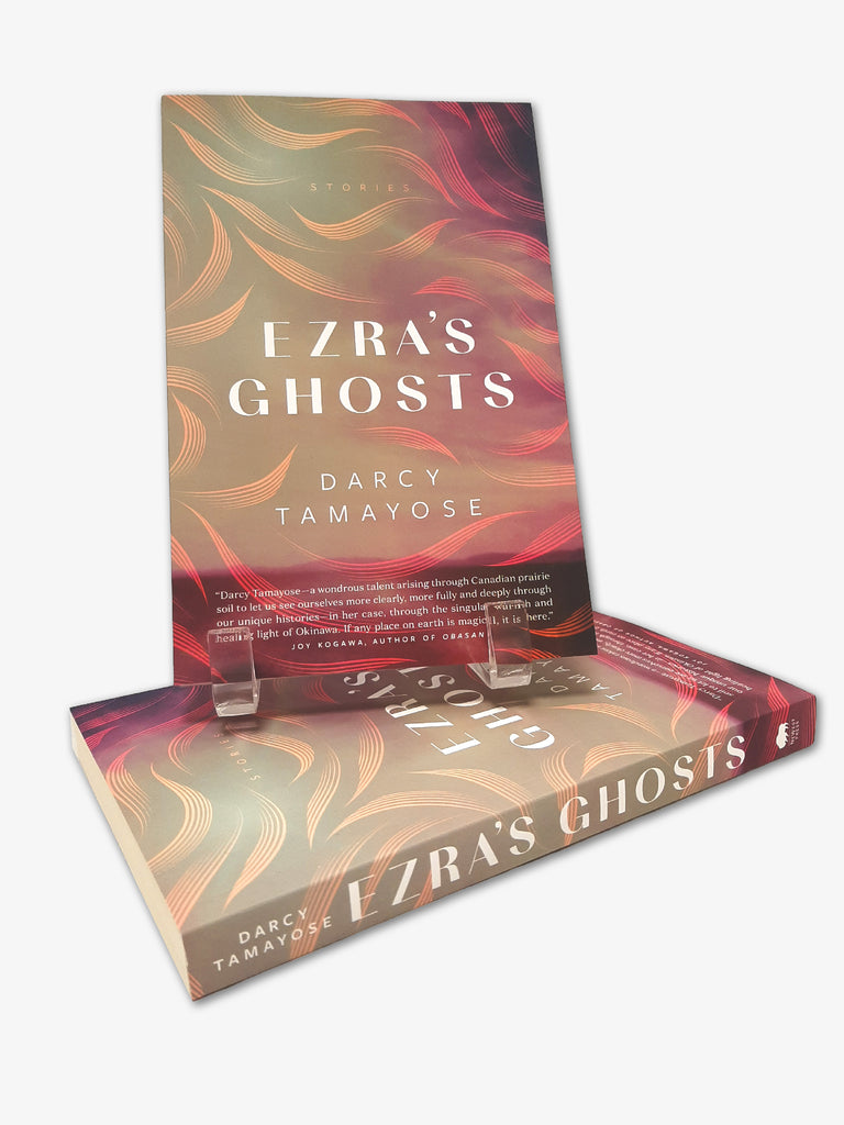 Nikkei National Museum ShopAward-winning author Darcy Tamayose returns with Ezra's Ghosts, a collection of fantastical stories linked by a complex mingling of language and culture, as well as a deep understanding of grief and what it makes of us. Within these pages a scholar writes home from the Ryukyu Islands, not knowing that his hometown will soon face a deadly calamity of its own. Another seeker of truth is trapped in Ezra after her violent death, and must watch how her family -- and her killer -- alter in her absence. The oldest man in town, an immigrant who came to Canada to escape imperial hardships, sprouts wings, and a wounded journalist bears witness to his transformation. Finally, past and present collide as a researcher reflects on the recent skinwars that have completely altered the world's topography. Binding the stories together is an intersect of arrival and departure -- in a quiet prairie town called Ezra.