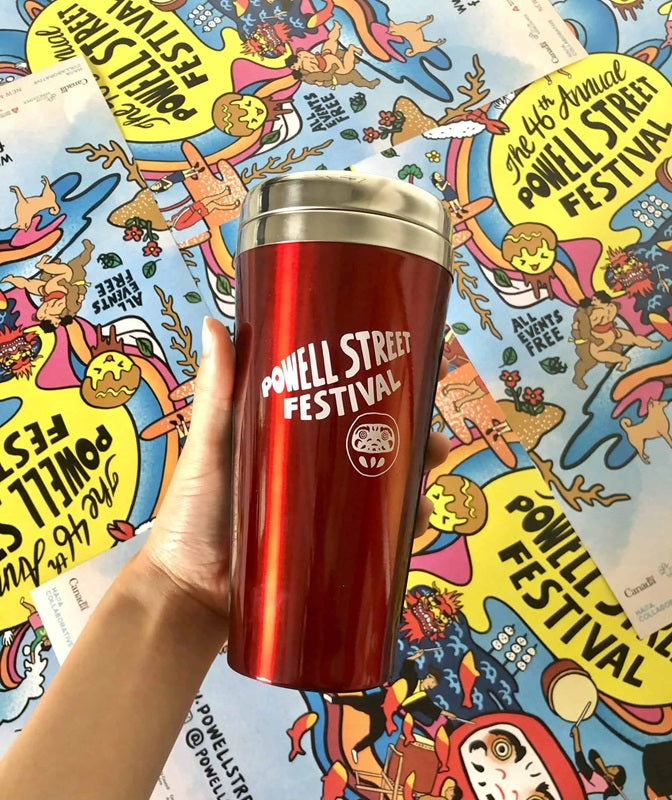 Take your coffee or smoothie in Powell Street Festival style with this dashing 15-oz. stainless travel mug!