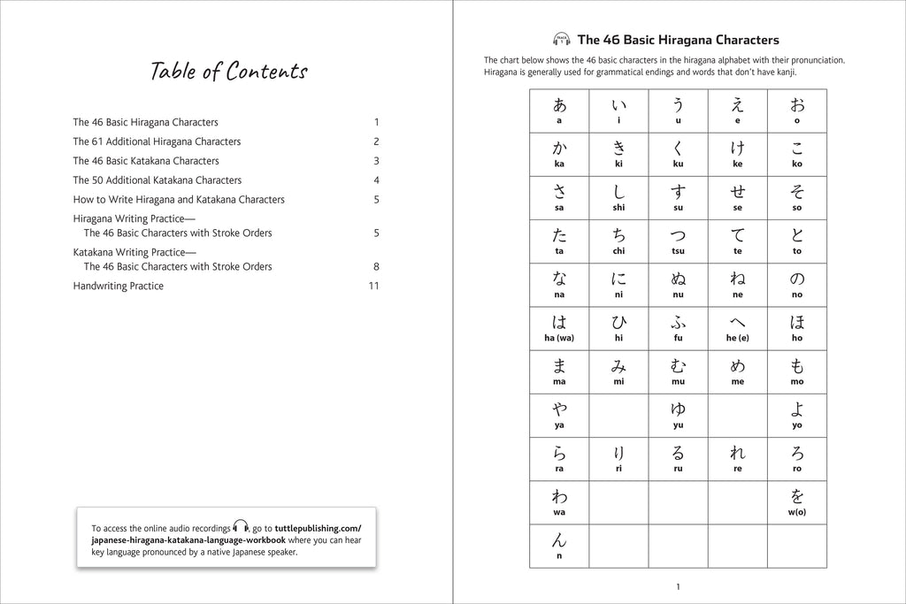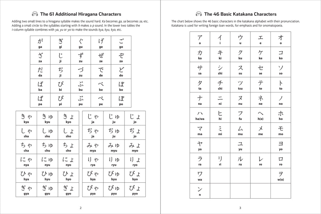 Free online audio recordings by native Japanese speakers teach you the correct sounds and pronunciations of all the letters and words in the book.