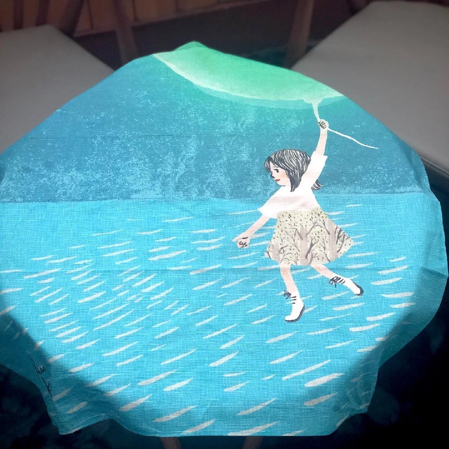 I often use furoshiki in my daily life, so I wanted to have a furoshiki with my own design. It is useful not only for wrapping things, for bags and tablecloths. It is 100% cotton, it can be used for scarves as well.